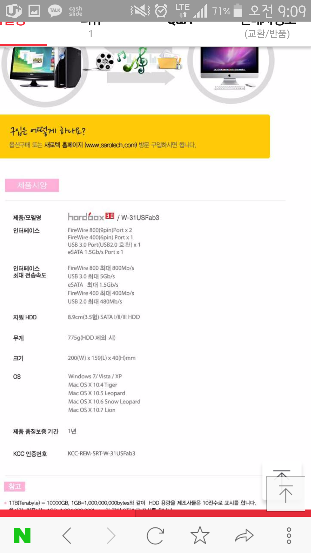 혹시 제가 첨부한 사진의 저 외장하드를 파이어와이어 400케이블로 연결해서